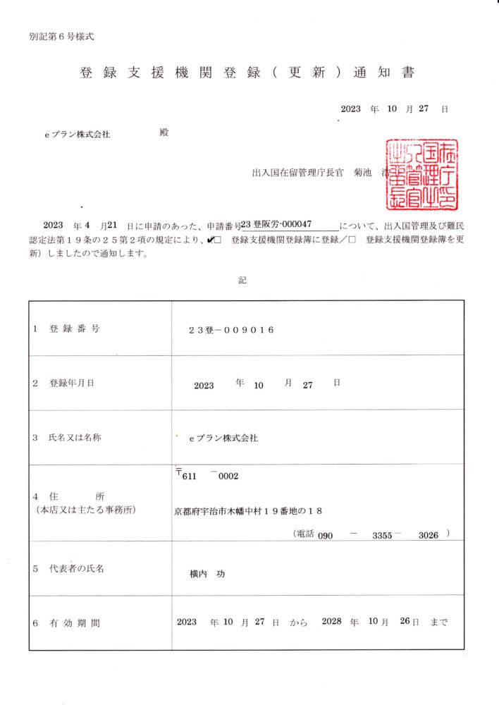 介護事業施設様にて働きたいという外国人のために、これまでお取引をさせていただいていた事業所様(御会社様)にて特定技能(介護)者を雇用された際に、弊社で許認可を取得できましたので登録支援をさせていただくことが可能になりました。実動を開始しました。